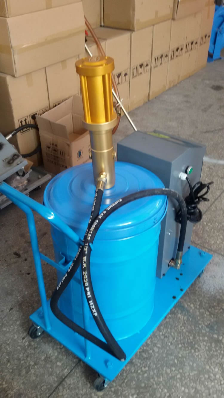 TI800-40A【气动润滑油数显定量加油机机技术参数】 加油枪数量:(33120加油枪) 1把, 气动泵:5:1 定量控制器:TI800 流量计:高精度椭圆齿轮流量计 电源:220V 功率:100W 输油管:1/2“,4米 加油流量: ≤30LPM(升/分钟),正常情况下10多升/分 设定范围: 0.1-999.9L 加油精度:优于2%; 【气动润滑油数显定量加油机 特 点】 ■硬件选择可靠、稳定,性价比高,操作简便、界面友好; ■注油的定量检测采用重复性好的流量计; ■设备外形美观、操作方便。 ■开关阀选用耐压高、开关动作时间短、寿命长、可靠性高的产品。 ■平均无故障时间:控制系统的平均无故障时间大于1万小时; ■数字预设、修改、存储加注数值 ■加注精度可进行标定,确保加注精度 ■工作状态实时动态显示 ■单次加注量、累计加注量等参数数字显示 【气动润滑油数显定量加油机加注步骤】 工件到位――人工注油口固定――加油信号(人工给定)――定量加注――自动停止