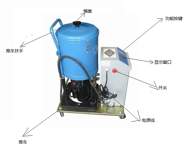 可加注各种中低粘度油料 适用于各种动力机械加注黄油作业,振动小,噪音低 适用工程机械0-3#黄油加注 电动黄油机 技术参数:
