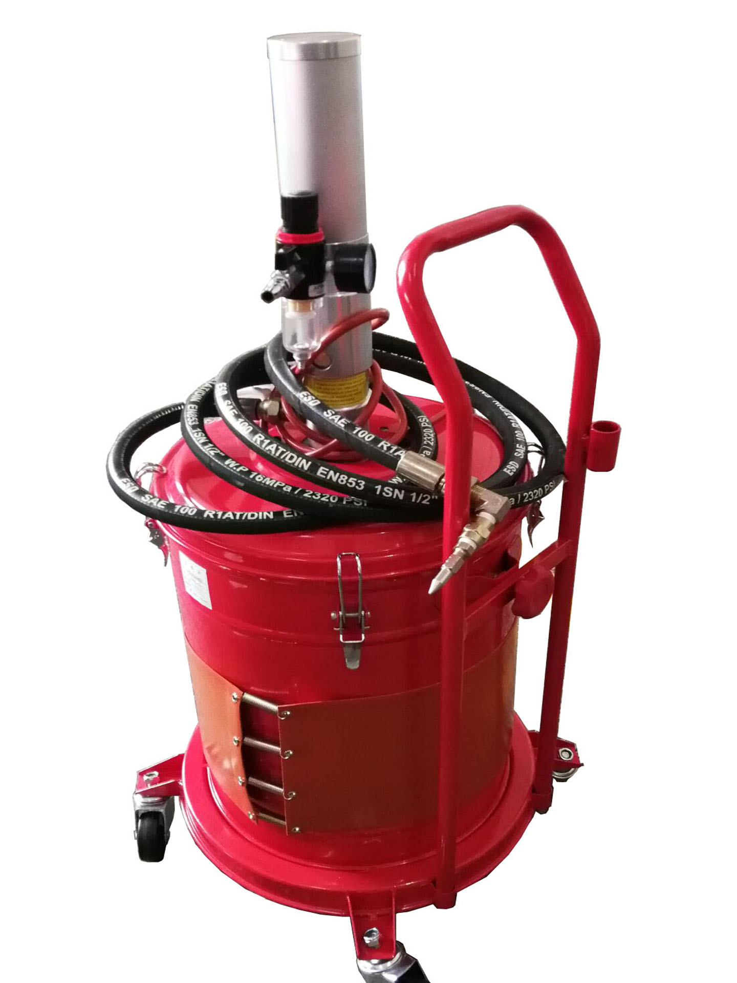 型号:TGR37040S 品牌:TGRJD 品名:移动式气动稀油加油机37040厂家直供 计量大流量 双层过滤 【移动式气动稀油加油机TGR37040S技术参数】 适用于40公斤油桶的稀油加注套件(如为更小或更大油桶请说明大小) 精确度+/- 0.5% 最大流量可达5-16L/min 双作用桶装泵5:1 吸油杆长:480mm 气源压力:4—8bar 电子流量计 使用动力:经净化之压缩空气 抽吸油料:各种机油、齿轮油、液压油、润滑油,后桥油加注 安装要求:垂直放置 输出压力:0.8-1.2Mpa 抽吸速度:5-16升/分钟 吸管直径:¢42毫米 软管规格:直径1/2英寸长4m,配备电子流量计及注油枪 【移动式气动稀油加油机37040的组成】 双作用桶装泵5:1 桶孔螺母(将泵固定在油桶上) 1 /2’’ 4M输油管 简易枪 进油口出油口配有过滤网。 防溅漏斗(选配件)