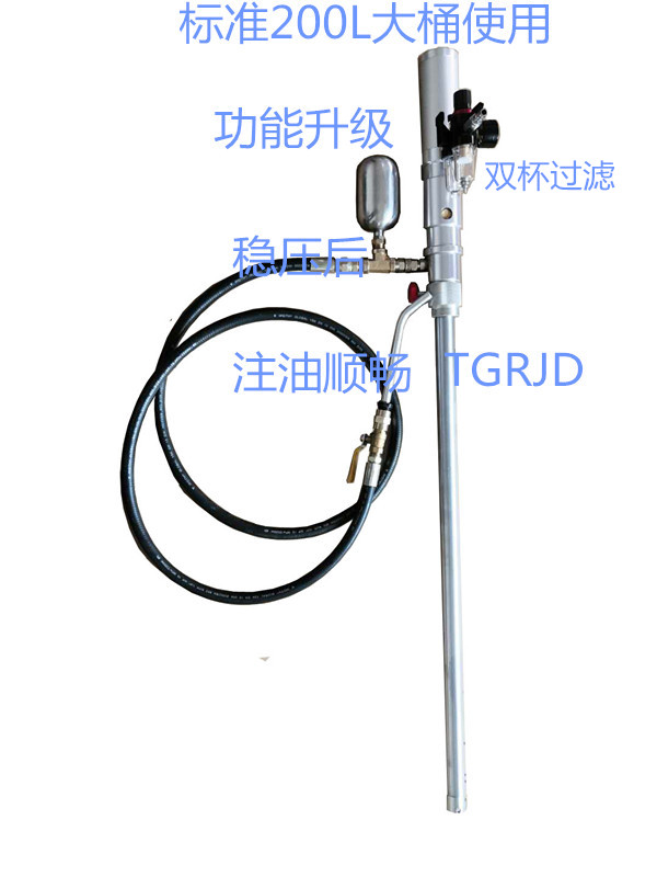 【气动液压油注油机TGR37155J应用范围】 泰格瑞生产的气动液压油注油机适用于适用于180-220L大桶油料的发动机油、齿轮油、冷却液、动力油、液压油、变速箱油、中后桥油、等油品及防冻液或其他类似流体的在非真空状态下长距离的计量输送加注,目前汽车修理厂,汽车4S站,快速换油服务中心,车间生产线等领域首选加油设备。 【气动液压油注油机TGR37155J简介】利用压缩空气作为动力,推动柱塞泵往复运动,进行润滑油输送和加注的。通过软管盘与计量显示加油枪连接,输出油料,数字显示流量,计量准确,操作简便,实现车间润滑油或其他类似流体的加注。 【气动液压油注油机TGR37155J技术参数】适用于180-220公斤标准油桶的稀油加注套件(如为小油桶请说明大小)吸油杆长:940mm气源压力:4—10bar双作用桶装泵5:1 安装要求:垂直放置输出压力:0.8-1.2Mpa吸管直径:¢42毫米软管规格:直径1/2英寸长2m,配备简易注油枪 使用动力:经净化之压缩空气抽吸油料:各种机油、液压油、变压器油等润滑 |