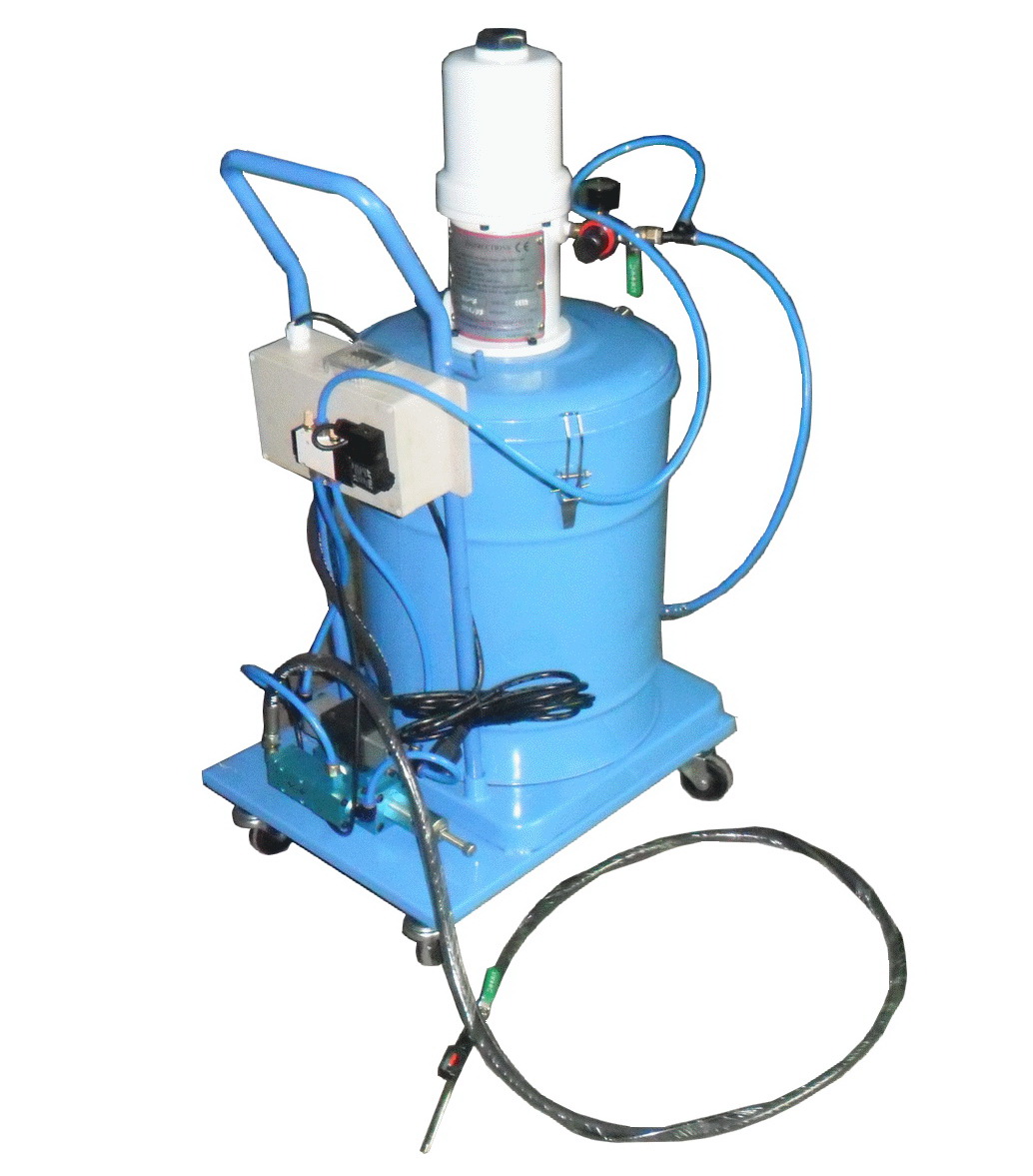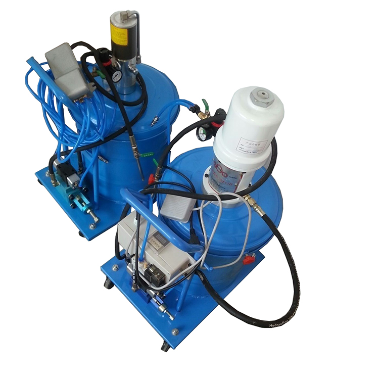 移动式气动黄油数显定量加注套件,可将10-30公斤油桶整个放入桶内、也可将散装油倒入桶内。 加注机配有1个50:1的强力泵、4米高压油管、可旋转高压黄油加注枪。该装置以气源为动力,由气动元件控制,性能稳定、快速注脂、适用范围广泛等特点。
