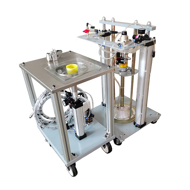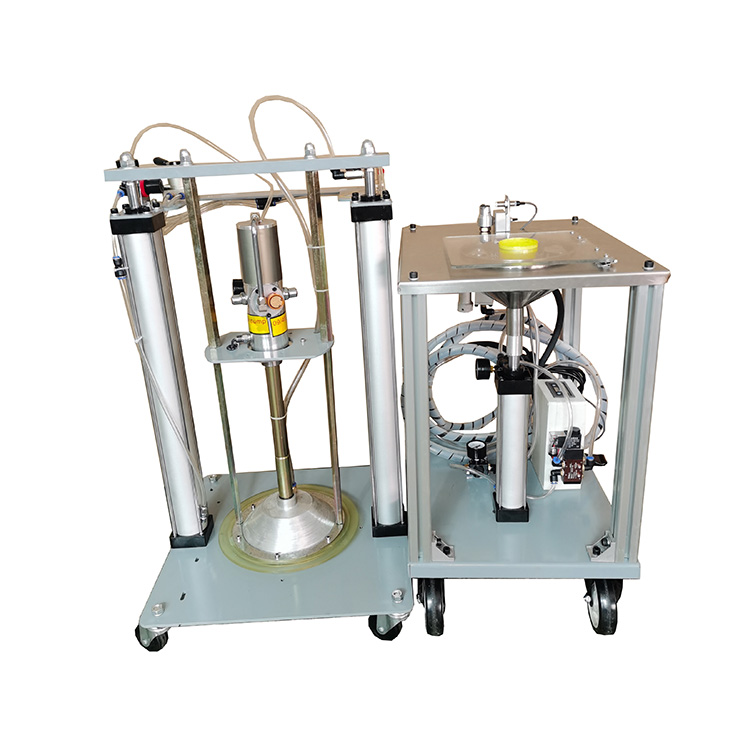 【工业级钢珠自动升降黄油加注设备使用范围】 1.适用于12升-20升(20公斤-30公斤)桶装黄油. 2. 0#~3#甚至更高黏度黃油均能順畅注入, 3.适用于换油中心,车间生产线 冶金,造纸,电子,电力,港口、工程机械、汽车、机械设备、轮船农用车辆等场合黄油脂的润滑输送和加注。也广泛用于汽车零部件行业中门锁、制动器、雨刮器、座椅导轨等工艺加脂,轴承行业中压盖前加脂,微型电机行业装配线的减速齿轮工艺加脂,电动工具行业中齿轮副装配加脂。是企业提高产品装配质量的必备手段。   【工业级钢珠自动升降黄油加注设备组成】 柱塞泵 压油机构(特殊情况还可加装加热装置) 不锈钢工作台,工装夹具 双立柱举升机构 可选配控制阀装置 油水分离器, 油脂数显定量加注装置(选配件) 【工业级钢珠自动升降黄油加注设备技术参数】 压力比: 50:1 进气口:G1/4(软管接头) 出油口:G1/4(软管接头) 气源压力: 4-8Kg/cm2 黃油输出压力:180-360 Kg/cm2 出油量: 300g-500g/分钟 电控脚踏开关,电控光电感应开关,电控手动开关(按需求选配) 油管长度: 2米