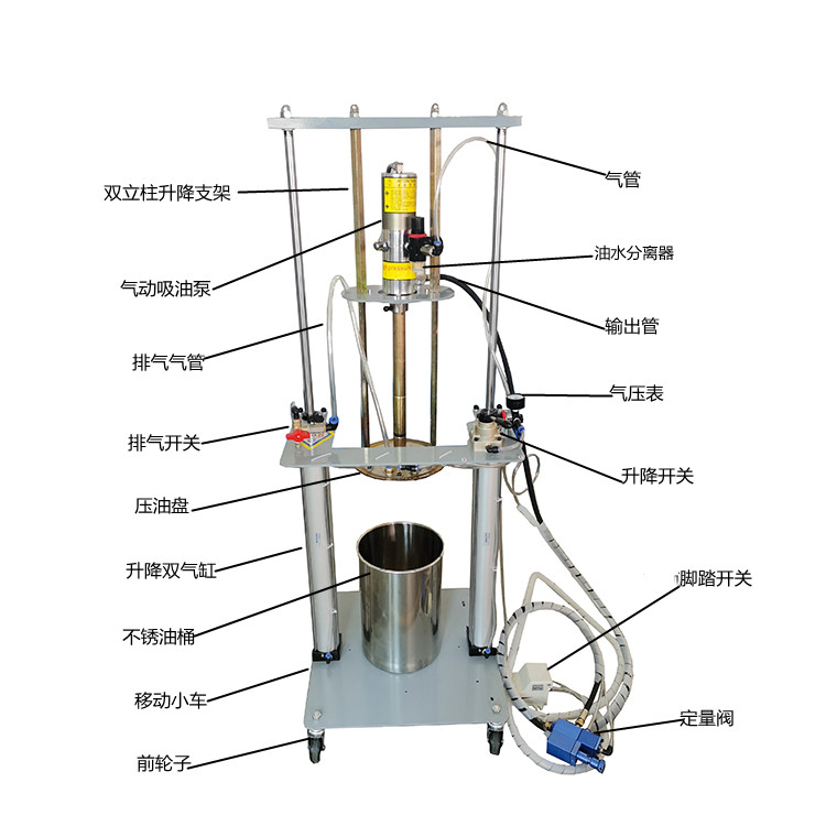 品名:生产线专用高粘度油脂定量注脂机TGR64110-D5 品牌:TGRJD 型号:TGR64110-D5 【高粘度油脂定量注脂机TGR64110-D5设备描述】 高粘度油脂定量注脂机TGR64110-D5配置的气动柱塞泵、压油盘、空气升降机及其他组合件专为抽注高粘度材料所配。高粘度材料专用的压油升降机构和压油盘构造有超强的挤压力量。从根本上弥补了附着在材料表面的通过吸附力把材料集中于底阀周围帮助泵吸收的随动板对高粘度油料无济于事的缺限。广泛用于油灰、粘接剂、润滑脂、印刷油墨等高频率集中定量供给的工作环境。 升降机的工作可通过转换阀进行升降操作,泵和压油盘也随着升降。当油桶内的材料用完后也可通过升降机的工作进行油桶更换。 【高粘度油脂定量注脂机TGR64110-D5设备组成】柱塞泵 压油机构(特殊情况还可加装加热装置) 黄油枪 双立柱举升机构 可选配控制阀装置 油水分离器, 油脂定量加注装置(选配件)【高粘度油脂定量注脂机TGR64110-D5技术参数】出油口:G1/4(软管接头)进气口:G1/4(软管接头)气动泵压力比: 50:1 气源压力: 4-8Kg/cm2黃油输出压力:180-480 Kg/cm2定量可调节范围:0.2-5克(可根据要求订做。) 油脂专用阀:耐高压,带定量调节标尺。定量精度:±1%出油量: 300- 900克/分;; 油管长度: 2米适用油桶: 15-40L桶装黄油.输送介质:0#~3#甚至更高黏度黃油均能順畅抽注。 |
