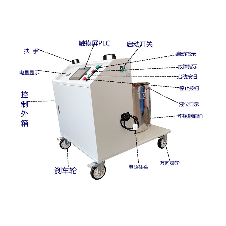 移动式定量加注系统配置由注油输送系统,控制系统等构成,采用PLC液晶操作显示屏,高精度流量计及定时定量装置对油品进行定量加注、输送等作业。